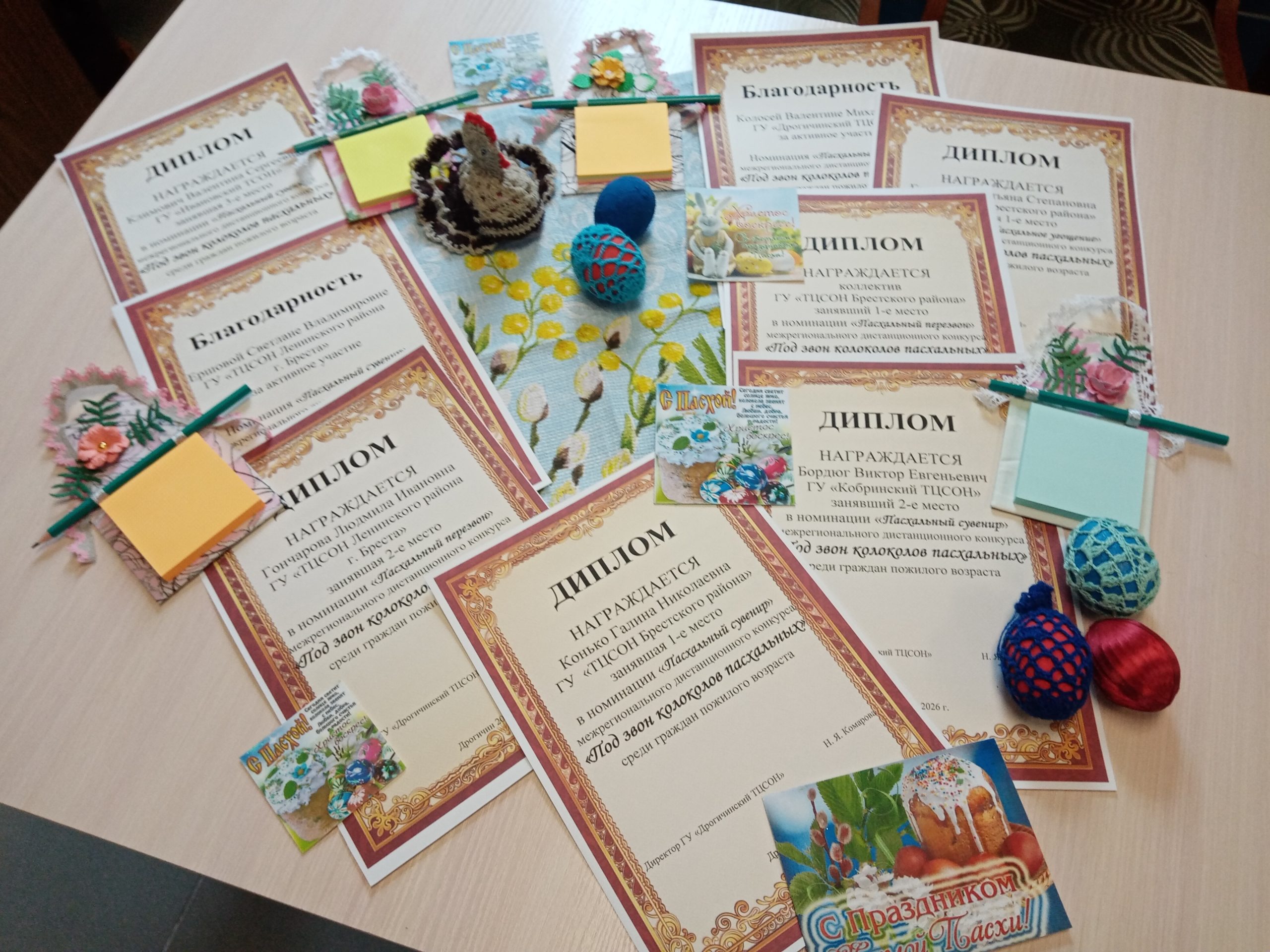 В филиале ГУ «Дрогичинский ТЦСОН» подведены итоги межрегионального дистанционного конкурса «Под звон колоколов пасхальных» среди граждан пожилого возраста. Конкурс проводится в рамках реализации Национальной стратегии Республики Беларусь «Активное долголетие – 2030» и посвящен Году белорусской женщины.