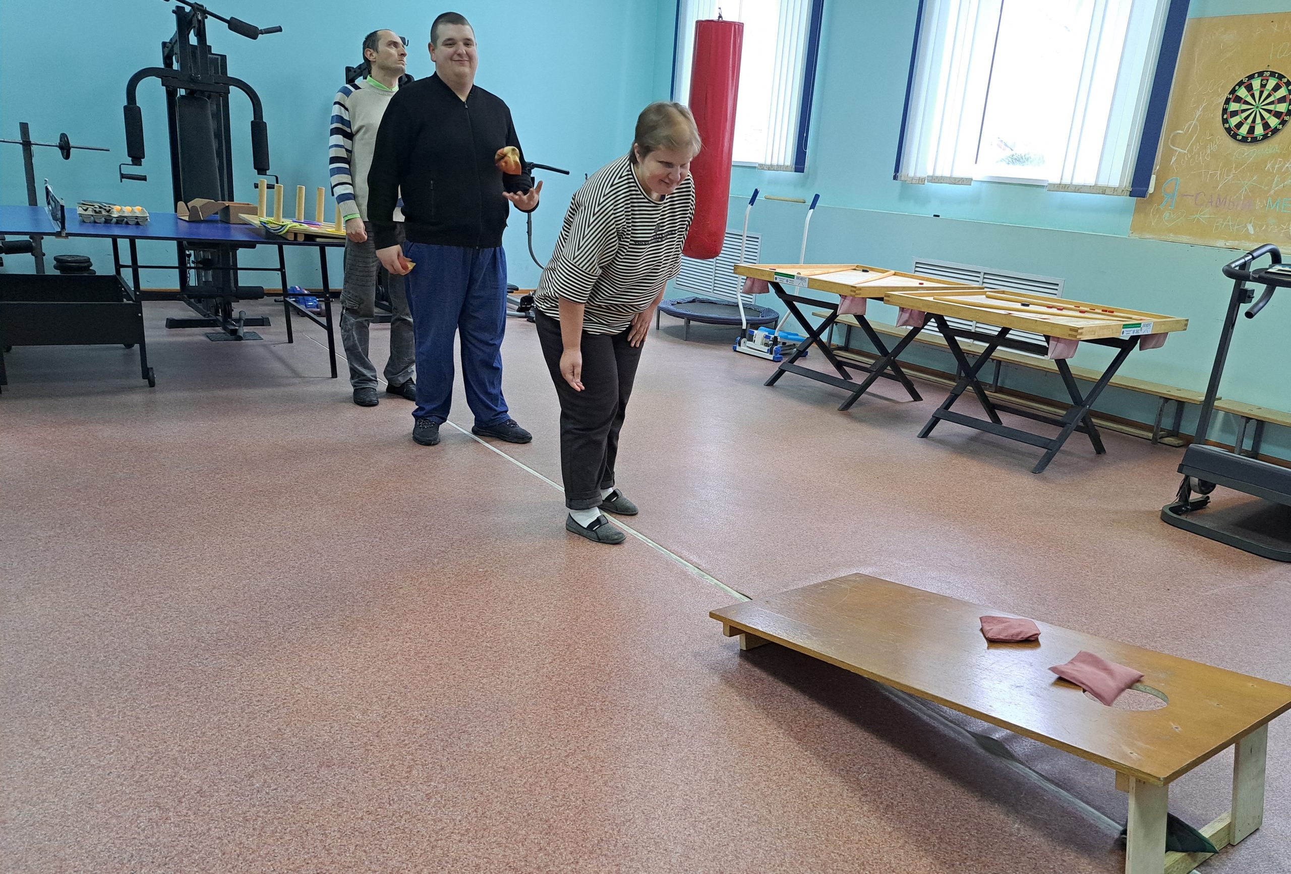 28ноября подопечные отделения социальной реабилитации, абилитации инвалидов ГУ «Дрогичинский ТЦСОН» соревновались в меткости. Игра корнхол стала замечательной возможностью не только продемонстрировать свои спортивные таланты, а также зарядиться позитивными эмоциями и отлично провести время.